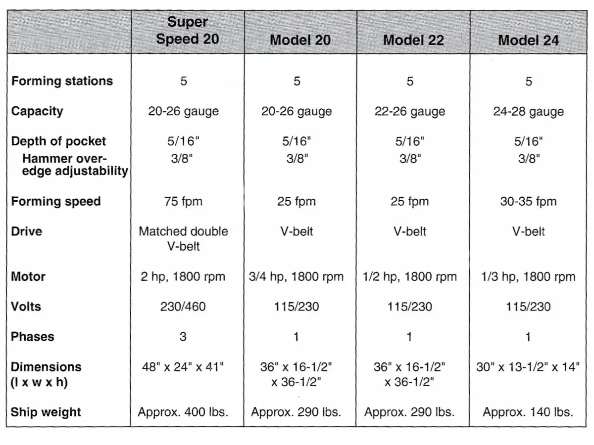 NEED SOMETHING HEAVIER THAN 20-GAUGE? *Ask about our heavy gauge Pittsburgh Lock rollforming machines. Call us at 800-753-0393