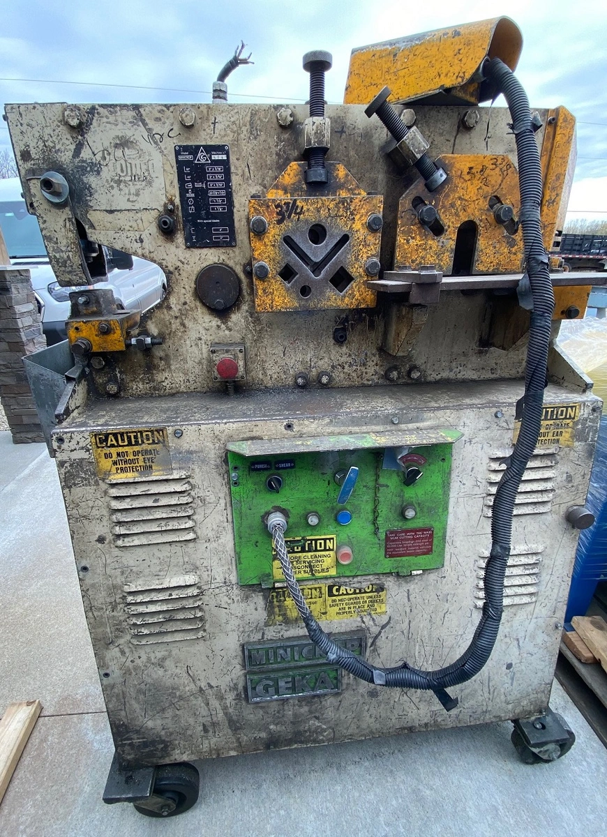 This 50 Ton Mini-Crop Geka ironworker is LOADED with many additional used punches & Dies. We can replace the coper notcher dies, the shear blade and the Angle/Rod shear blades OR YOU CAN BUY IT "AS IS" AND SAVE!!! MAKE AN OFFER ON THIS GEKA, Pick it up and SAVE.