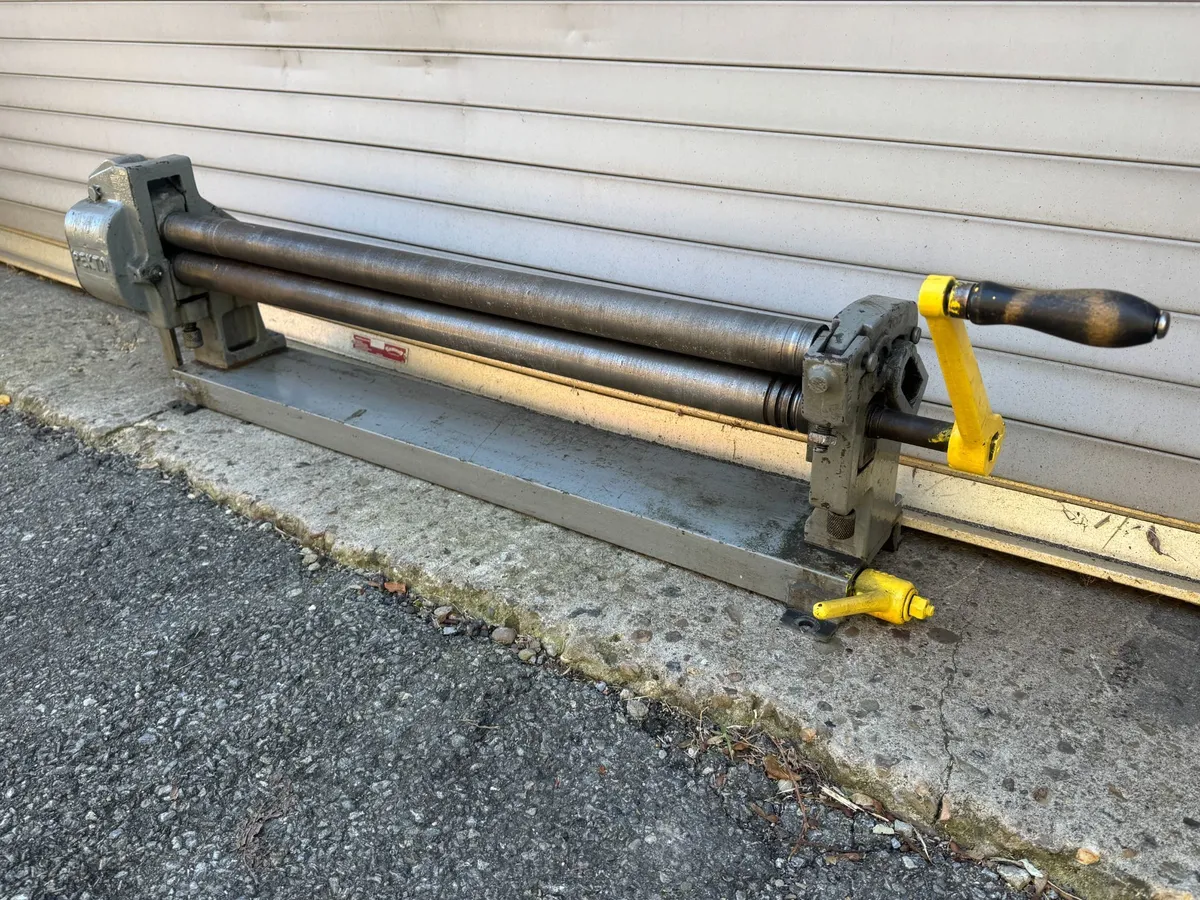 This is a No. 381 manual roll which has 2″ precision turned and ground high carbon steel rollers. There are three wiring grooves 3/16″, 1/4″ and 5/16″. All rolls are standard with fully enclosed gear housings, and all three rollers are driven. The upper roll lifts for conventional removal of the work piece. The maximum sheet length is 36″ with a thickness capacity of 22-gauge mild steel. This roll can be purchased in a package deal as a reduced price. What else are you needing for the shop? Let's combine a few machines to get the price down!! Thanks!