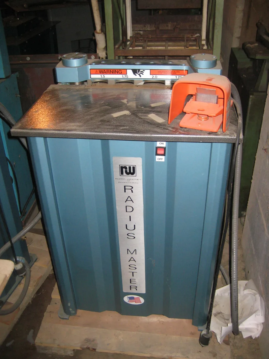 Roper Whitney’s Radius Master is a must for every fabricating shop. It’s a hydraulically operated, self contained unit for making radii in mild steel from 27 gauge up to 7 gauge without having to make blade adjustments and no setup.