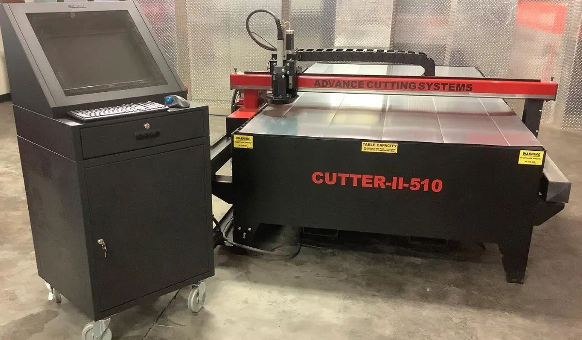 The Cutter-II is offered in 5′ x 10′ or 5′ x 20′ models. As standard features, the Cutter -II includes the Hypertherm Ti Touch Screen Color Graphic Control, Hypertherm Powermax 1000 Plasma, Floating Head, Dell Office Computer, Dell Color Laser Printer, Down-draft Cutting Table and On-site Installation and Training.