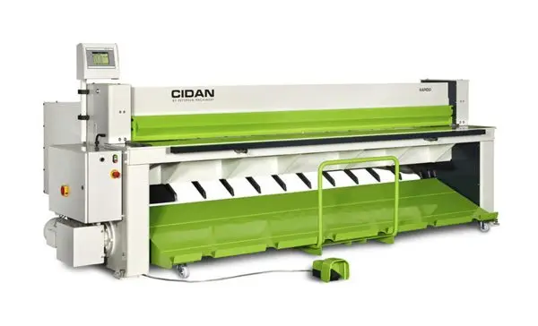 The CIDAN RAPIDO 32 guillotine shear is an electrical guillotine shear that works fully independent of oil or hydraulics and emphasizes our philosophy regarding the environment with very little energy and low noise output. The drive system with eccentrics, pulldown rods, and hold down system which can be positioned as close as 1” from the knives allow for easy and expedient trimming of narrow strips. The CIDAN RAPIDO guillotine shear is equipped with the CutLink control system, capable of queueing several programs, automatically shifting the machine from one step to the next. This already well-equipped machine also has a wide range of options including different back gauge and sheet handling systems.