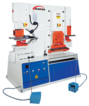 The Single Cylinder ironworkers from Sunrise offer a wide range of features in a user-friendly and robust single-operator design. Features include adjustable stroke, swing away stripper and multiple tool options.
