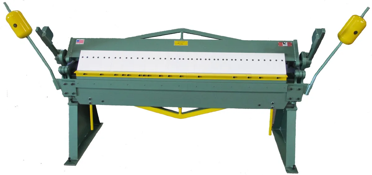 An incredibly universal hand brake. Featuring box & pan fingers up top and segmented, relocatable bend apron tooling below. Perfect for complex parts to include flange down bends, transverse duct forming & much more. With strategically positioned counter weights this brake makes for easy and smooth manual bending.