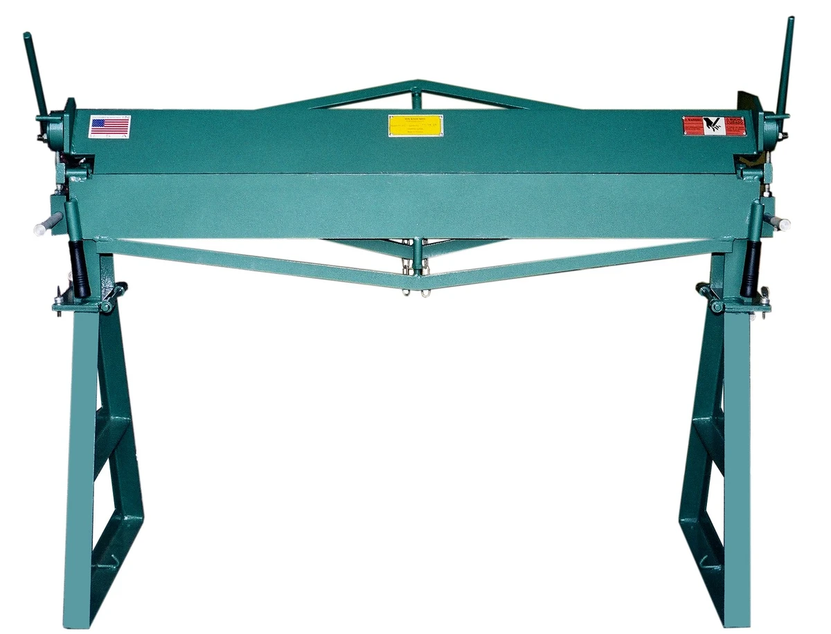 A true industrial quality the TK422 22-gauge x 48-inch portable brake! With folding legs and lift handles, this brake can easily be put on a truck and taken to the job site. Perfect for HVAC vans or roof repairs or a race car repair shop. 800-753-0393