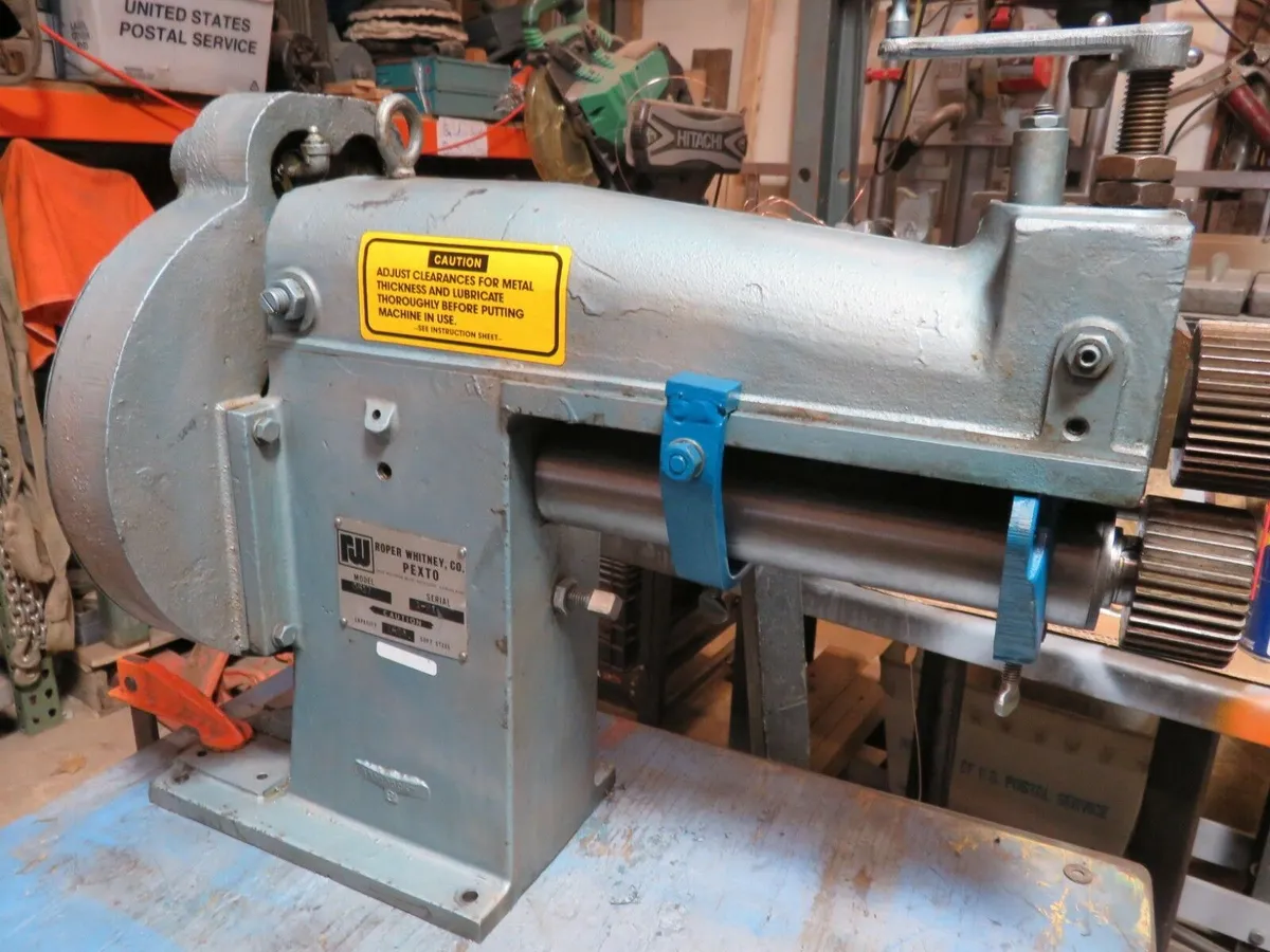 The No. 0617 beading machine is a deep throat 13" capacity design that is shipped with standard spacing collars and gauges for all operations except flanging. Rolls are ordered separately from the list here. It will form metal up to 18 gauge.