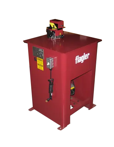The 36-000 Button Punch Snaplock Power Flanger is for manufacturing fittings using the button lock seam rather than Pittsburgh 2 step operation, first the flange is formed then the buttons are punched. This machine is built with a heavy duty cast iron gear housing with oil bath and complete with Flange Follower.