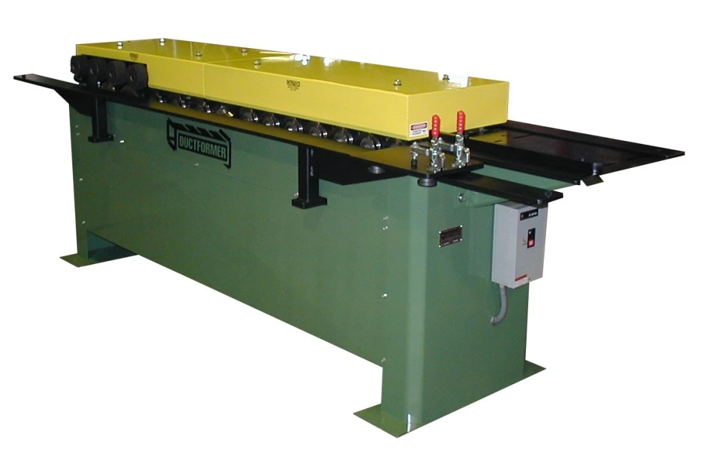 Our 100% Made in USA Ductformer TDFC Rollformer features an All-Gear Drive, Oil Bath Reducer, heavy duty spindles and quality Anti-friction Sealed Roller Bearings to provide years of maintenance free service. You will be amazed when you discover how quiet and smooth the Ductformer performs. The quality of craftsmanship and superior design puts Ductformer years ahead of their competition and it is for this reason we offer this machine and STOCK this machine. It's what we would buy ourselves for our own sheet metal shop.