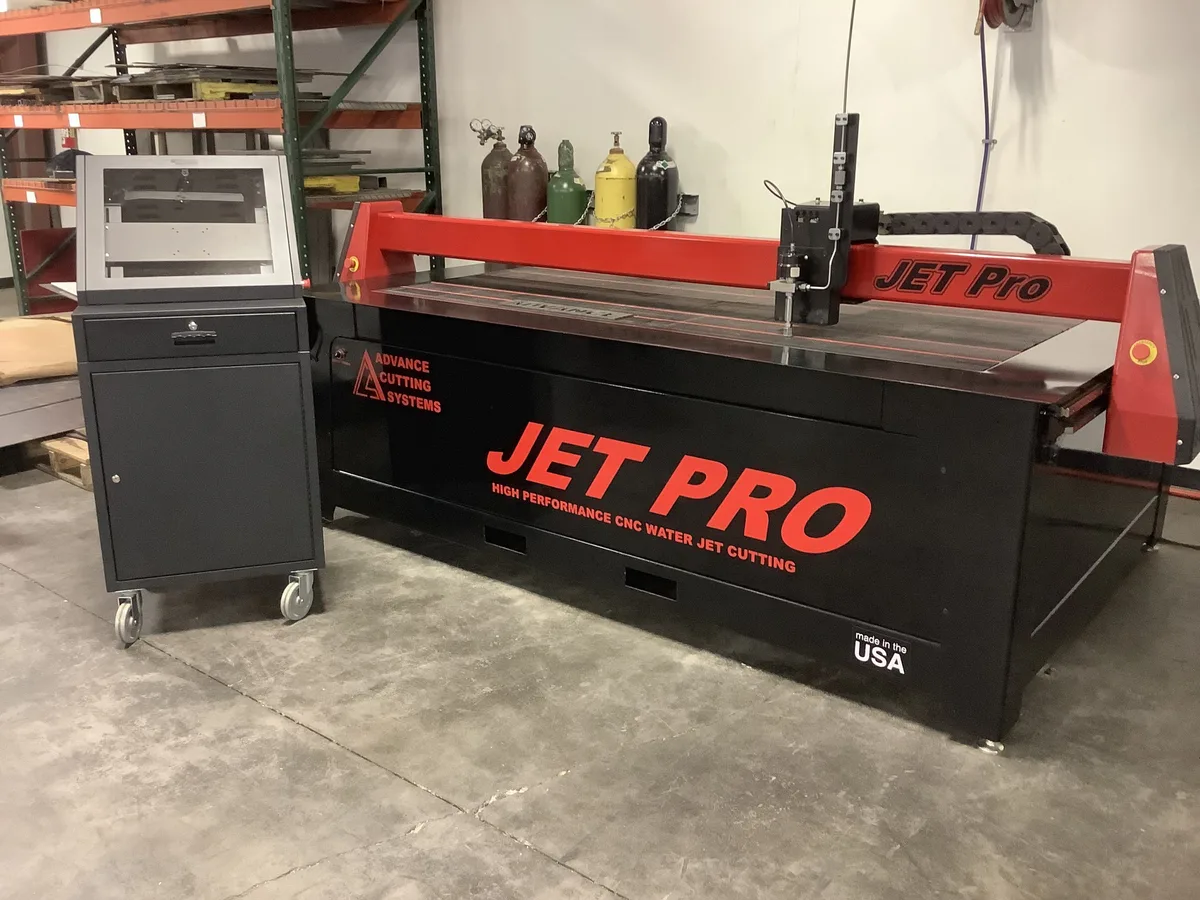 Advance Cutting Systems’ Jet-Master 510 meets the needs of the Job Shop market with the versatility offered by an abrasive waterjet at an incredible price! The JM-510 is designed and built in the USA and utilizes a color graphic control and an intensifier pump by H20 or Accustream. Photo above is in a Union Contractors shop, they cut everything from liner to 2″ solids and everything in between. Liner cut speed is in excess of 600 inches per minute.