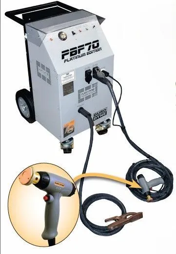 The PBF70 Portable Pinspotter features a multi-tap transformer allowing it to deliver precise, timed, low voltage to the welding tip for precision welds. This machine will weld pins from ½ inch to 4 inches long on steel from 26 to 16 gauge. A new, innovative, ergonomic, high impact gun allows more flexibility during operation. Proven solid-state weld control circuitry guarantees years of reliable, trouble-free