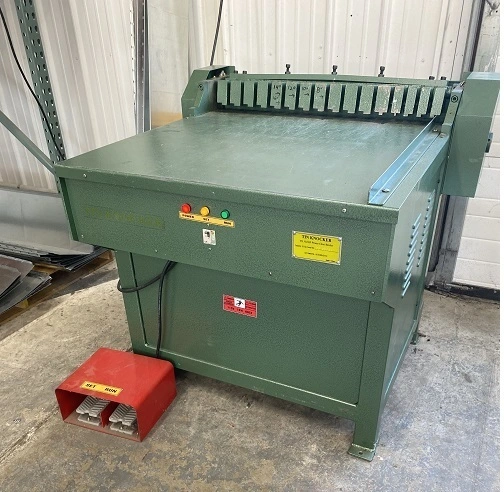 The TK No. 30 Power Cleat Bender is a smooth running, quiet machine that will last a career. Fast and efficient, this machine effortlessly prepares the duct for drive cleats. The machine is strong enough to form the reverse, open him with a swift wiping action. THIS MEANS LITTLE OR NO SHOCK AND THE MACHINE WILL NOT KILL ITSELF. The TK No. 30 is the only machine in the market with a proven FAILSAFE SYSTEM which protects the machine from damage due to operator error. It’s oversized table promotes safety and improved control of already formed duct sections. US Patent No. US D830,4315 S