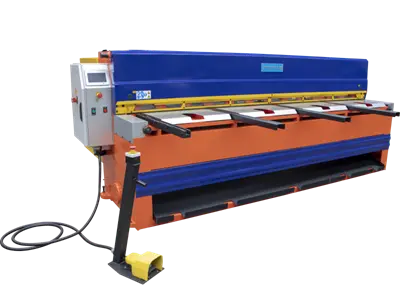 This is a new 10' x 10-gauge shear that will drop sheared parts to both the front or rear of the shear at 37 strokes per minute. The sheet is held up against the backgauge until sheared and the operator can program it to drop to the back or front of the shear, all through the CNC control panel.