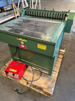 This USED No. 30 Power Cleat Bender HAS BEEN SOLD. We only have new in stock at this time. ONLY ONE NEW CLEATBENDER IN STOCK AT THIS TIME. MARCH 1, 2024. These machines are smooth running, quiet machine that will last. This machine effortlessly prepares the duct for drive cleats. The machine is strong enough to form the reverse, open him with a swift wiping action. The TK No. 30 is the only machine in the market with a proven FAILSAFE SYSTEM which protects the machine from damage due to operator error. It’s oversized table promotes safety and improved control of already formed duct sections. US Patent No. US D830,4315 S