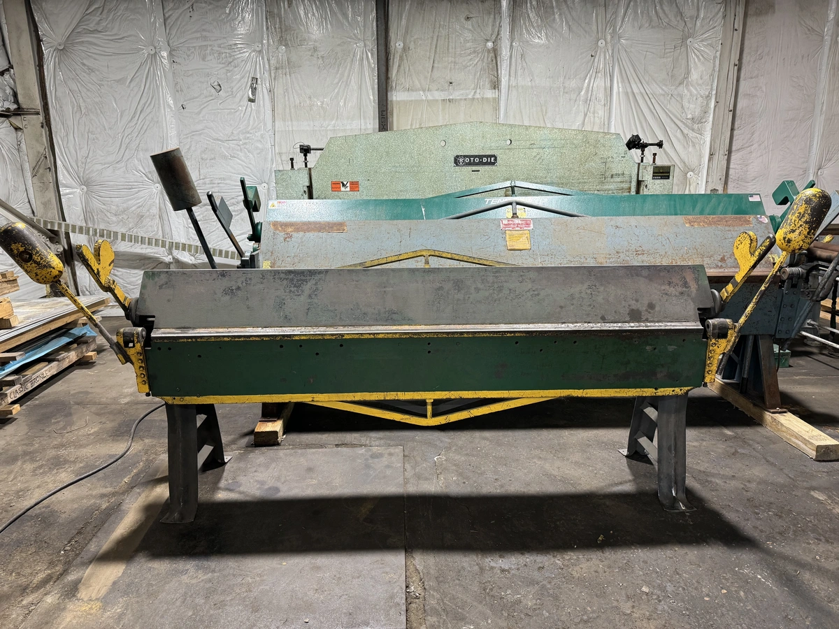 This is an 8' x 16-gauge Floor Model Handbrake s/n 56262. No nicks in the nosebar, great for a HVAC duct shop needing that extra bending capacity.