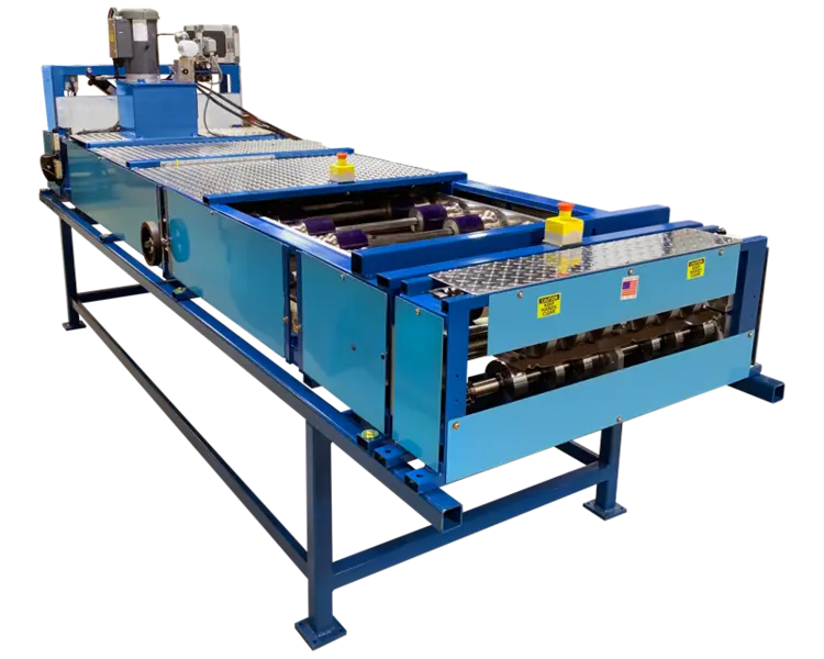 The VS-150 machine is equipped with hydraulic drive and front hydraulic scissors shear, 110 volt – 1 phase power, 40 FPM speed. It produces the 1″ and 1 1/2″ Standing Seam profile and “U-Panels in the base model machine, adjustable width panels of 9″ to 24”. MADE IN THE USA. 40 feet per minute 120 v AC adjustable 9"-24"finished panels hydraulic drive and shear 1"-1 1/2" mechanical dies included options : digital controller 1.5" snap lock dies quick release rib rolls Capacities: 24-26 Ga mild steel .032 aluminum 12-20 oz. copper 22 Ga painted steel. Mounted in an aluminum trailer by Nitro with rear barn doors, side barn doors, front awning style door and built in outlets. Comes with 1 decoiler mounted on decking for ease when positioning.