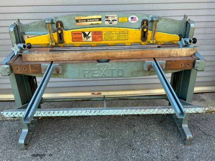 PEXTO foot squaring shears are the industry’s most accurate. They are easy to operate and offer precise shearing, long life and dependability. All are provided with precise gauging and hold-downs for cutting accuracy. Maximum rated capacity is 16-gauge mild steel. No. 152 shears offer triple-action shearing which includes relief on both edges of both the fixed and moving blades. It eliminates blade-to-blade friction, provides “bite” to eliminate sheet movement under shearing stress and produces double penetration in the cutting action. This contributes to easier operation. The No. 152 will handle a 52″ sheet.