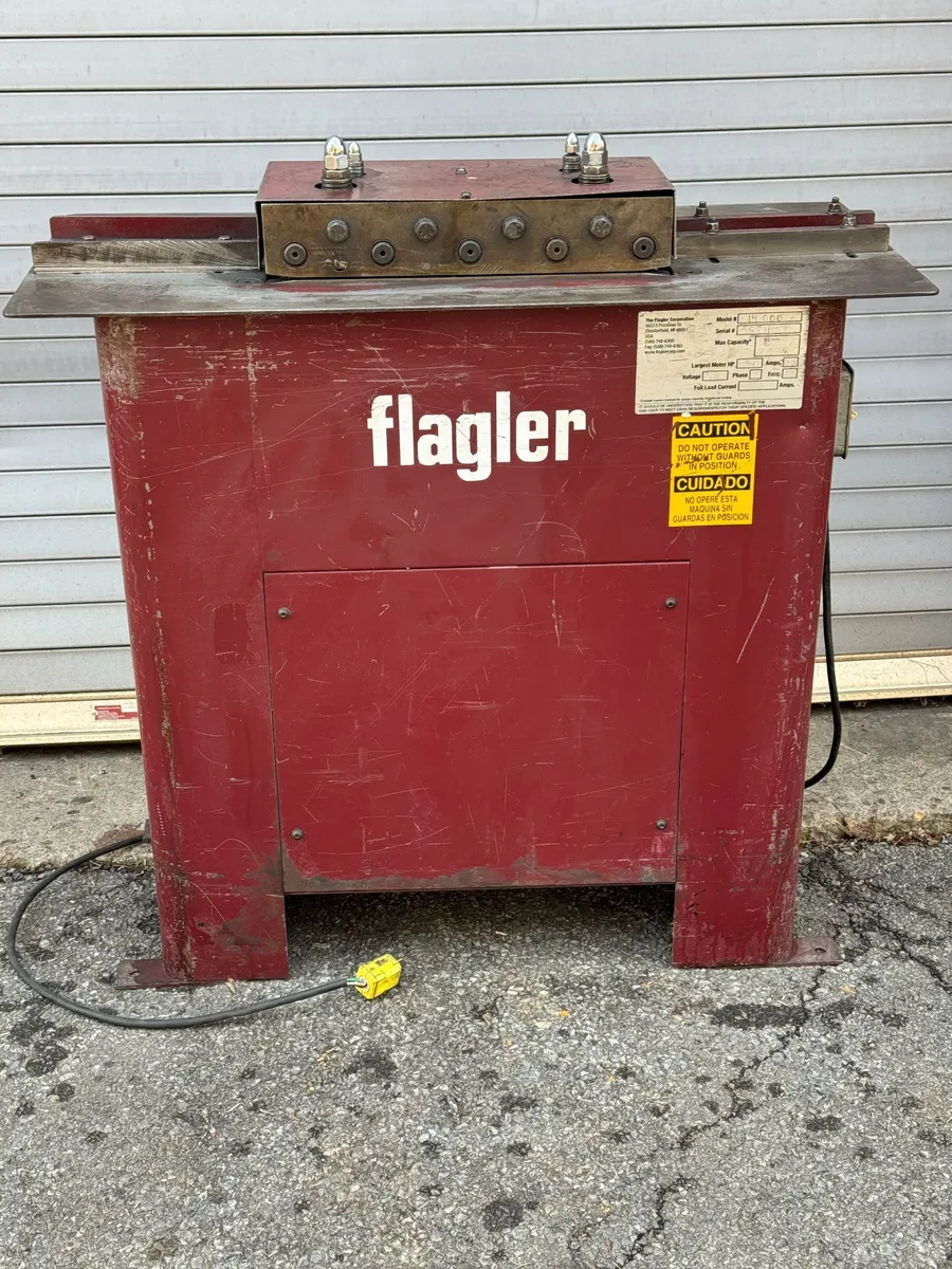 Machine is FOB Pittsburgh, PA 15205 ADDITIONAL PHOTOS SHOWING THE OPTIONAL FLANGER that can be added to this machine anytime after purchase. IF you'd like the flanger to be added to the machine prior to shipping to you, we are happy to do this before shipping if flanger is shipped and paid for before we ship the machine to you. Let us know! 800-753-0393