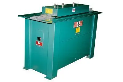 Tin Knocker's 9 Station Button Lock Rollformer means no hammering over of edges. The Button Lock roll former comes with "male" tooling on one side and "female" on the opposing side. A fast, effective way of marrying 20 to 26 gauge duct sections.