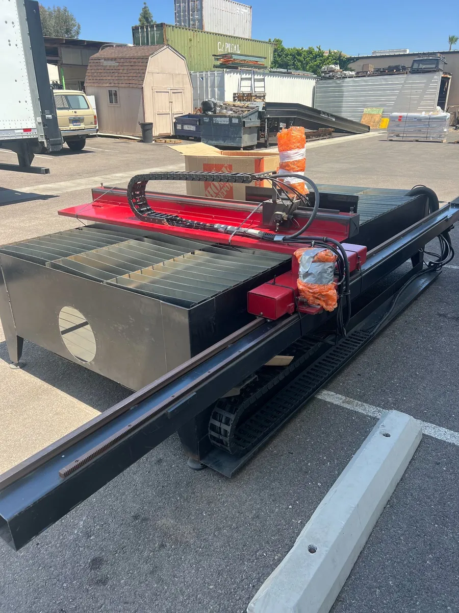 This pre-owned Duct Cutter II cutting system was introduced to the market in 2006 as the latest model in the Advance Cutting Systems product line. The Cutter II is a state of the art Computer Numerically Controlled (CNC) Cutting System designed to use a plasma-cutting torch to cut out geometrical shapes and parametrically programmed HVAC (Duct Work) fittings. The fittings are programmed in the office using Profile Master PM-2000 Duct-CAM (Computer Aided Manufacturing) software; the parts are then nested on a sheet of metal to minimize material waste and are then cut out at high speed with the plasma torch.