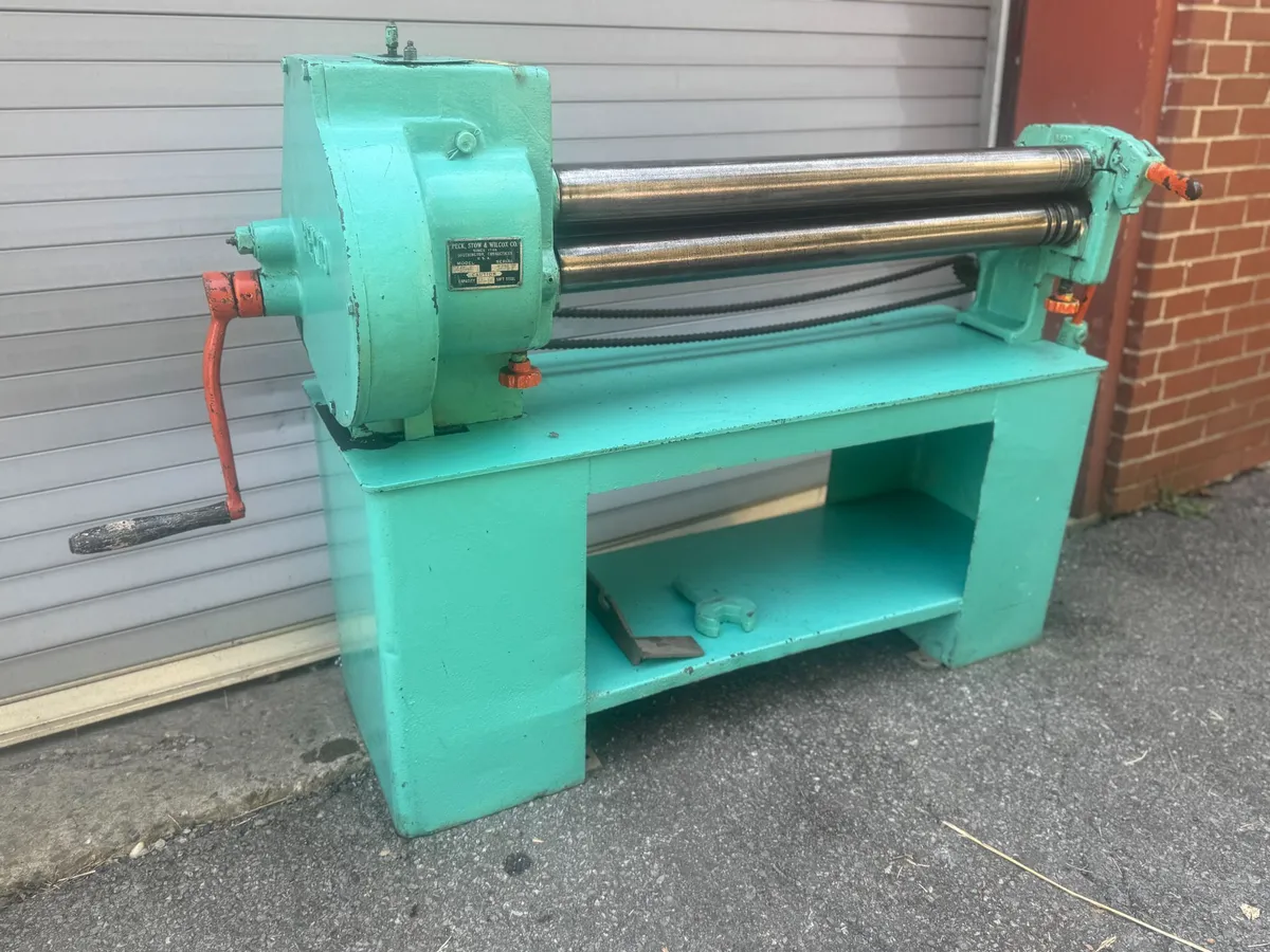 The Pexto 416E is a heavy-duty manual slip roll machine designed for bending mild steel sheets up to 14 gauge, featuring 3-inch precision turned rollers and a maximum forming length of 36 inches.