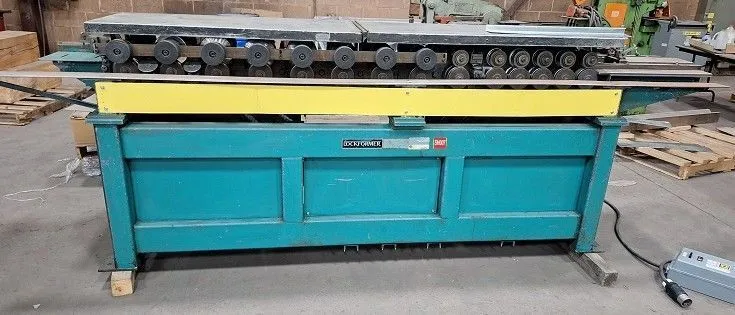 This is a USED 14-Station Lockformer TDC Rollformer produces rollformed flanges certified to have passed all the functional criteria tests from 1/2” W.G. to 10” W.G. to comply with SMACNA Duct Construction Standard (DCS). It has a capacity of 18-26ga steel at a speed 60 ft/min. Ready to go to work!